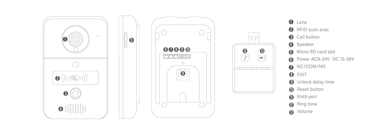 RFID cards are supported enabling multiple users to access electronic door directly. (Large capacity of 5000 users)